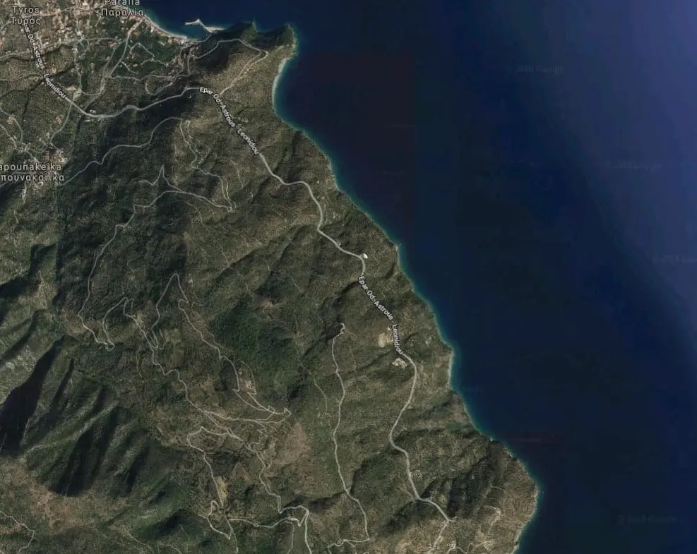 An Out Of City Plot of 6798 sq.m. next to the sea, with a view of the sea and 0 distance from the coastline. Located at Pera Melana, just South of Tyros as the distance from Leonidion city is 13 klm and from Tyros 4 klm.