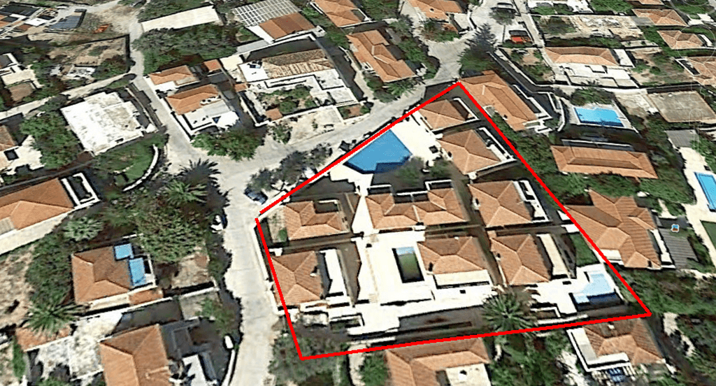 The residential complex consists of eight buildings with three levels each. There are five single-family houses and three semi-detached houses with two maisonettes per house. Due to its elevated position, the villa provides views of the Old Port, the sea, the roofs, and the gardens of the neighboring Pityousa complex.