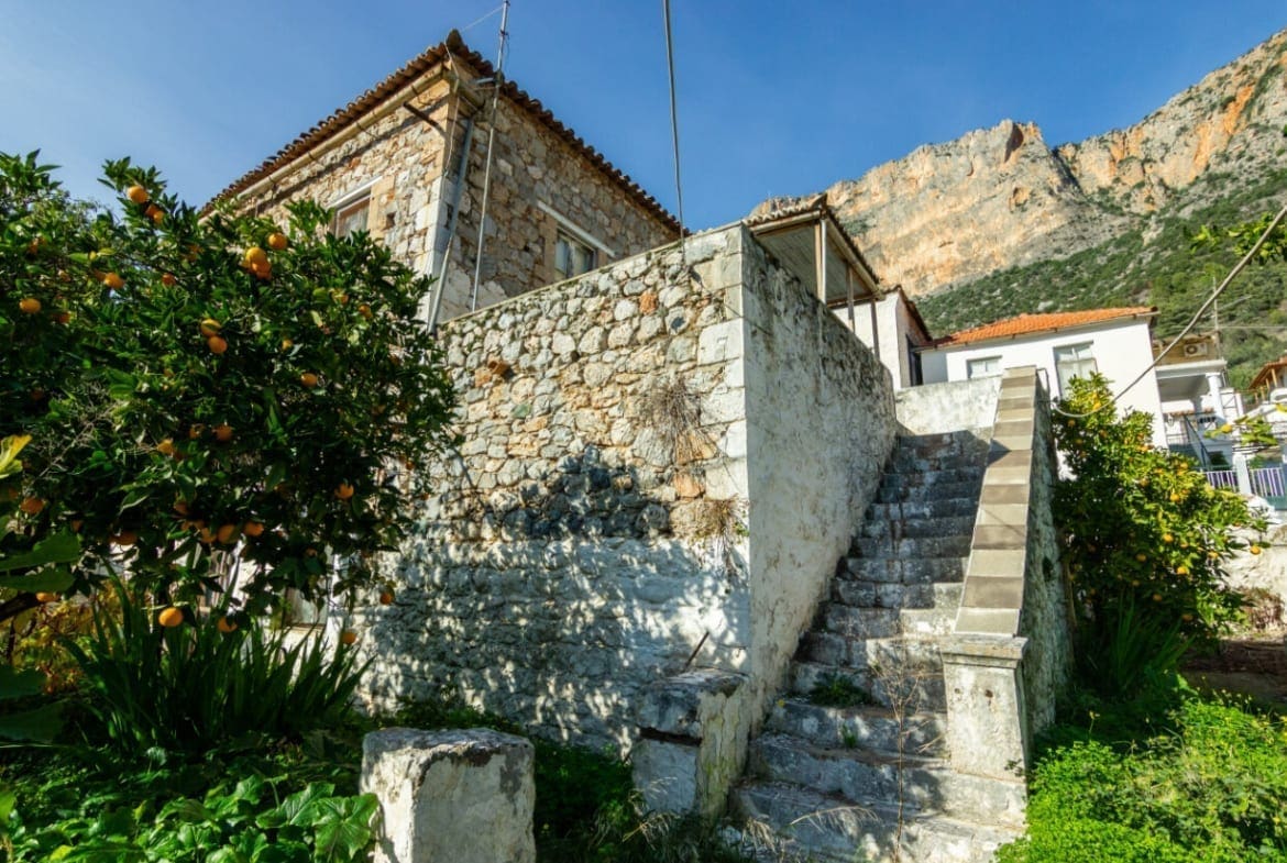A stone Villa of 248,21 sq.m. is for sale at 345.97 sq.m. plot. The house is divided into two levels, with a year of construction around 1875. This is a restoration project with great prospects, giving you the flexibility to create the house of your dreams! It consists of six divided rooms on the first floor, one of which has a fireplace. You can leave them like this, or tear down the walls and completely change the interior – It’s up to you! On the ground floor we have another wonderful big area. Once you enter the house you will be fascinated by the large garden which is full with fruit trees and beautiful flowers all year round and then, the wonderful view of Leonidion Village, the famous Red Rock of Tsakonia and the Myrtoon Sea can blow your mind!